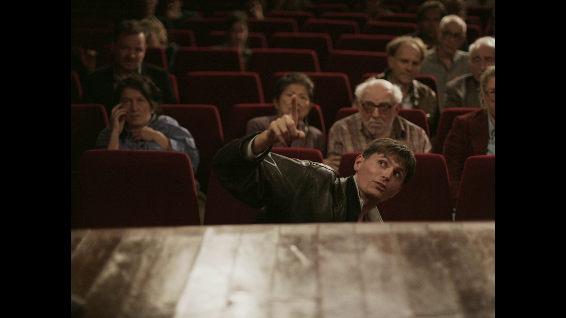 典雅舒适的小剧院里,一出差强人意的舞台剧正在上演,突然有名观众挺身站起,打断了演出的进行。他自称名叫亚尼克,是一名停车场管理员,下班后舟车劳顿赶来看戏,演出内容却让他失望透顶。众人将他驱离剧院,过没多久他却又突然出现,掏出手枪跳上舞台……今晚,亚尼克才是真正的主角!