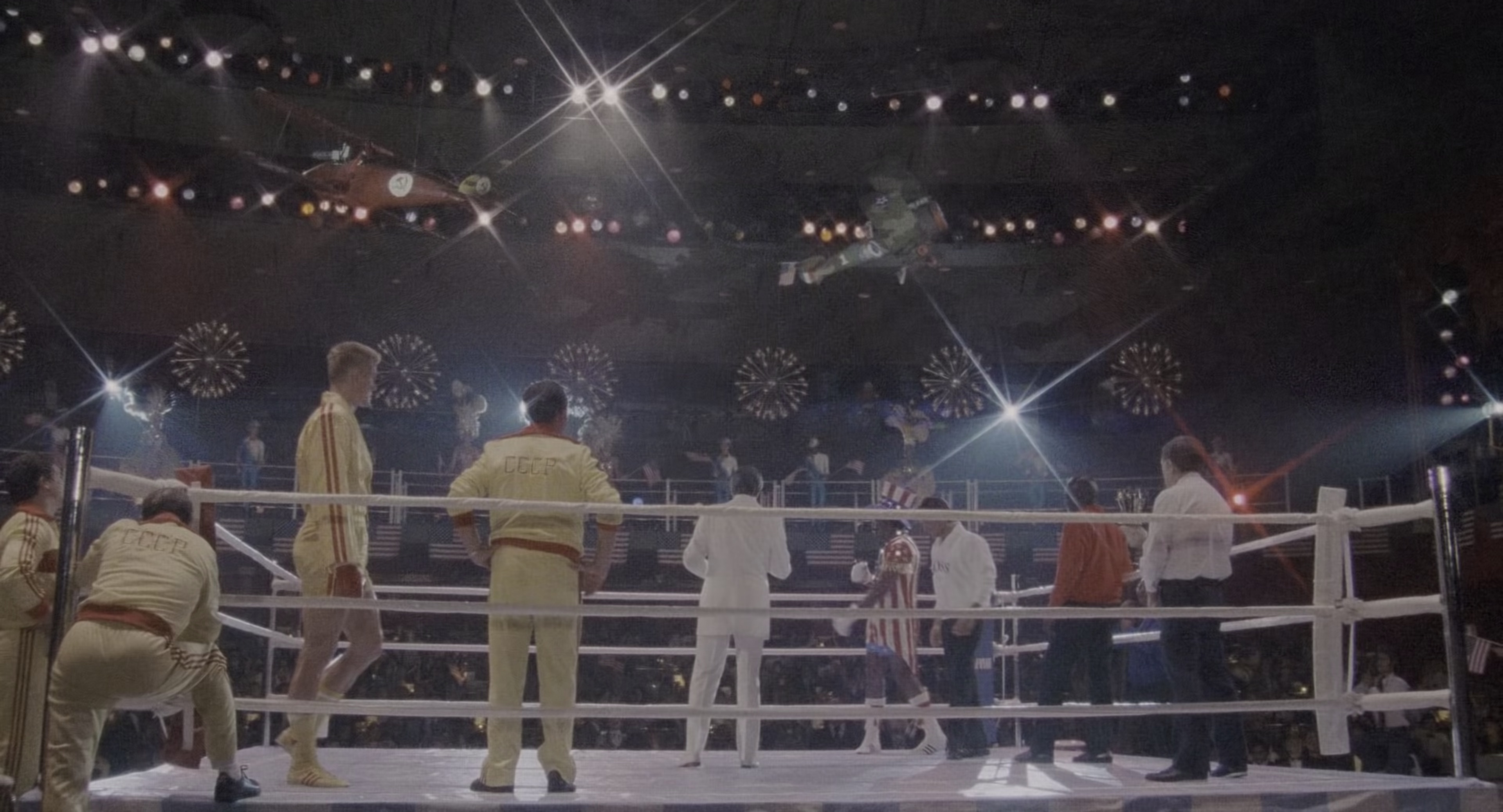 1985年,那时正是美苏两极争霸越演越烈的年代,史泰龙自导自演的洛基系列也出到了第四集,这一系列影片旨在振奋人心、宣扬美国精神。这一集讲述的是洛基(西尔维斯特•史泰龙 Sylvester Stallone 饰)的好友前美国拳王到苏联出战他们研制的拳击机械人,不敌对手最终身遭不测。为了帮好友复仇和维护国家荣誉,洛基决定再次出马。