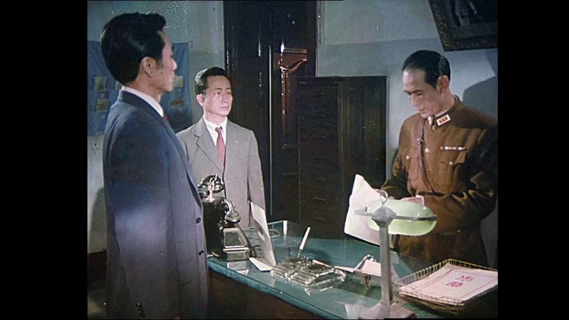鼓起了爱国勇气,国民党的下级军官关上尉亦开始觉醒。革命力量的大发展,使以何应钦为首的反共势力及日本军国主义加速了反动步伐,终于制造了震惊中外的“皖南事变”,叶挺将军被绑架,新四军战士遭到血腥屠杀。就在国民党军政要员举杯庆功之时,周副主席只身闯入国府大厅,横眉怒斥何应钦,尔后,奋笔疾书:“千古奇冤,江南一叶,同室操戈,相煎何急?!”使“皖南事变”的真相大白于天下。为进一步揭穿反共顽固假抗日、真投降、积极反共的本质,挽救民族危亡,周副主席再次来到“总长”办公室,列举了何应钦勾结日本特务、屠杀抗日将士及与日寇签署共同反共协定草案等罪行,使何应钦之流狼狈不堪,节节溃败。何应钦与朝野二郎遂起杀机,指示特务拦车向周副主席射击,党的战士钟志为了抗日事业献出了自己的生命。一人倒下,千万人站起,中华民族的爱国儿女觉醒了!周副主席犹如一座灯塔,屹立在人民之中,他庄严宣布:“黑暗是暂时的,光明一定会到来!”