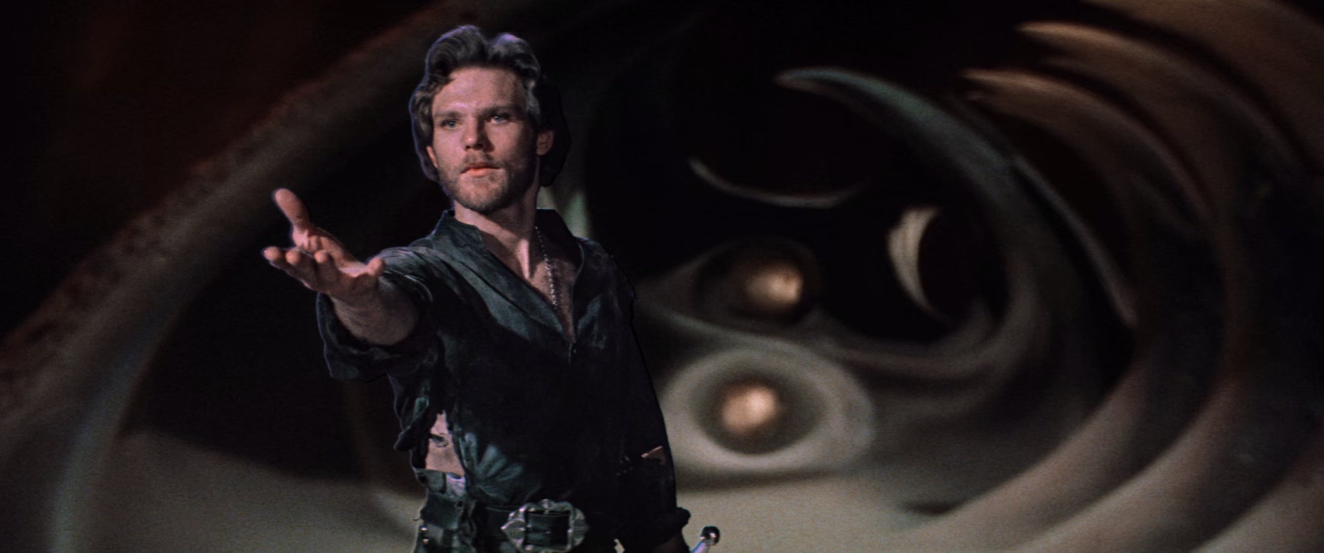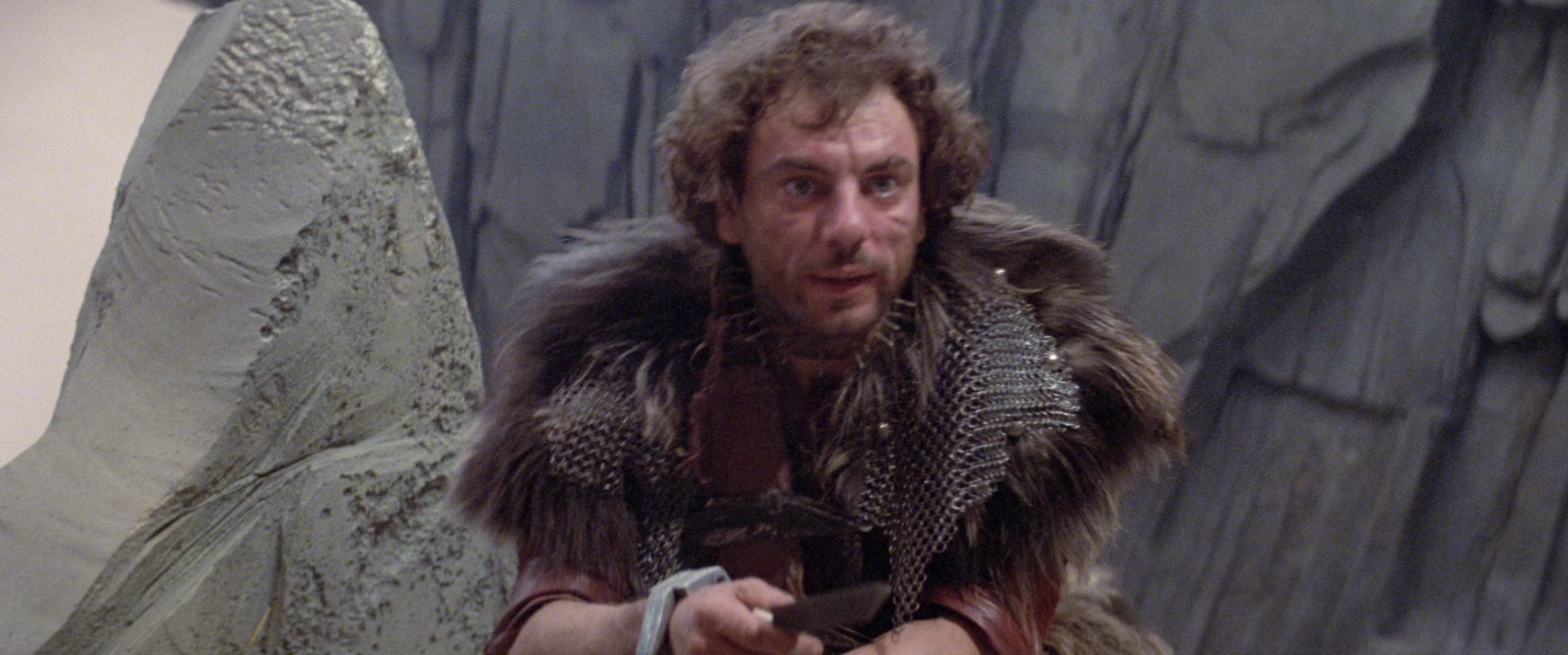 怪兽想要和丽萨诞下子嗣,但遭到了丽萨强烈的拒绝,因为她心中唯一认定的丈夫只有克罗恩。那边厢,身受重伤的克罗恩幸运的得到了一位名叫亚尔(弗雷迪·琼斯 Freddie Jones 饰)的老人的救助,在亚尔的指点下,克罗恩得到了一把非常厉害的飞刀,带着强大的武器,克罗恩决定启程寻找怪兽的踪迹,解救心爱的公主。
