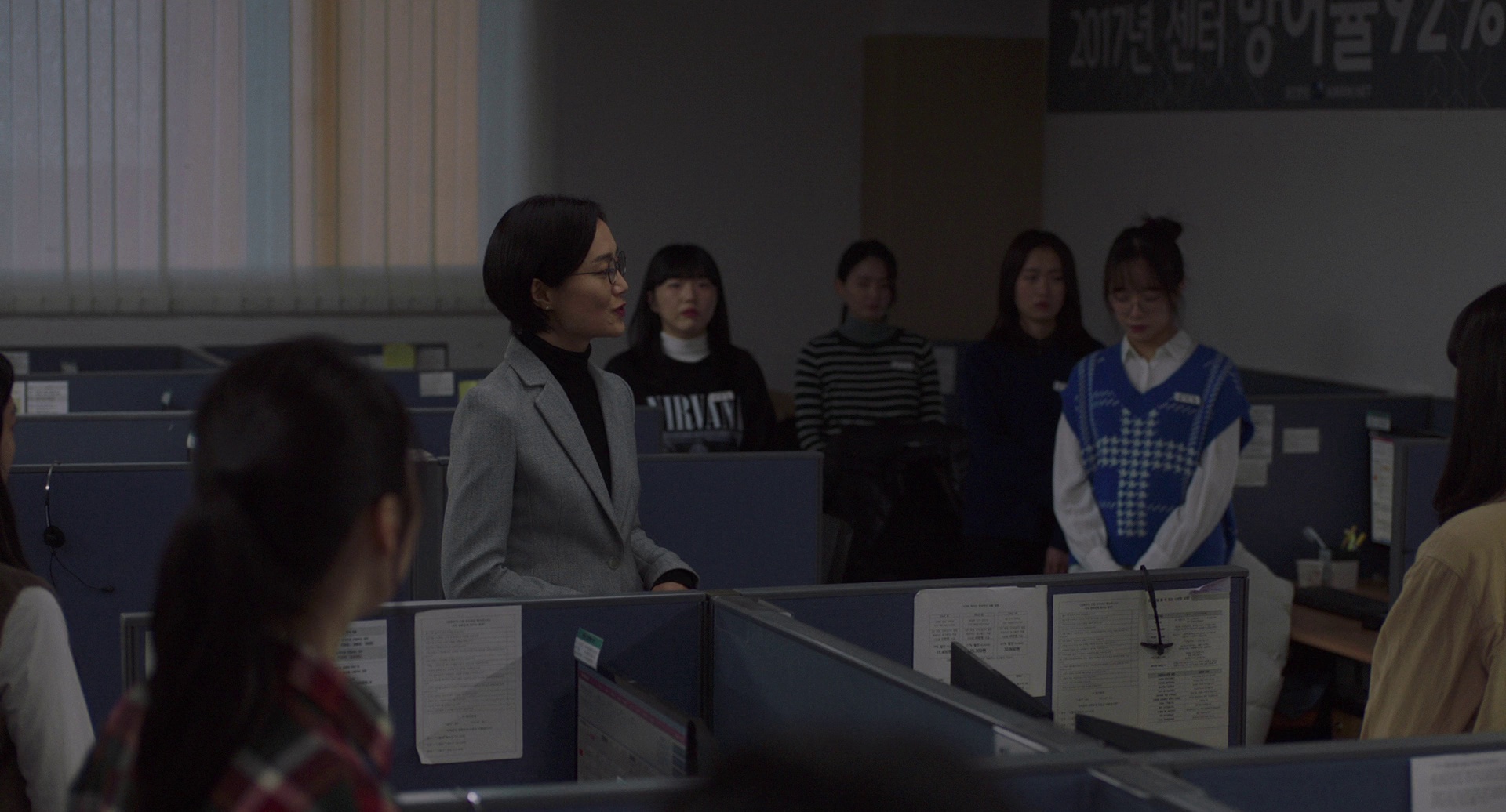 高三女生金素熙(金时恩 饰)即将毕业,她被学校安排到某大型通讯公司下的客户中心实习。这个热爱跳舞并对未来充满向往的女孩,怎么也不会想到人生却开启了阴暗之旅。客户中心接线员要求精通各类话术,她们必须想方设法留住客户,提升业绩,为此不惜用带有欺骗性的话语,当然也要承受难缠客 户的侮辱与谩骂。作为前辈的组长对她时有苛责,却还尽心维护,可是他本人也无法忍受这种吃人的体制而选择自杀。在此之后,素熙拒绝签订隐瞒真相的承诺书,未过多久也在各方压力下走上绝路。本来是一桩稀松平常的自杀事件,刑警吴宥真(裴斗娜 饰)却执意揪出每一个道貌岸然的加害者。
