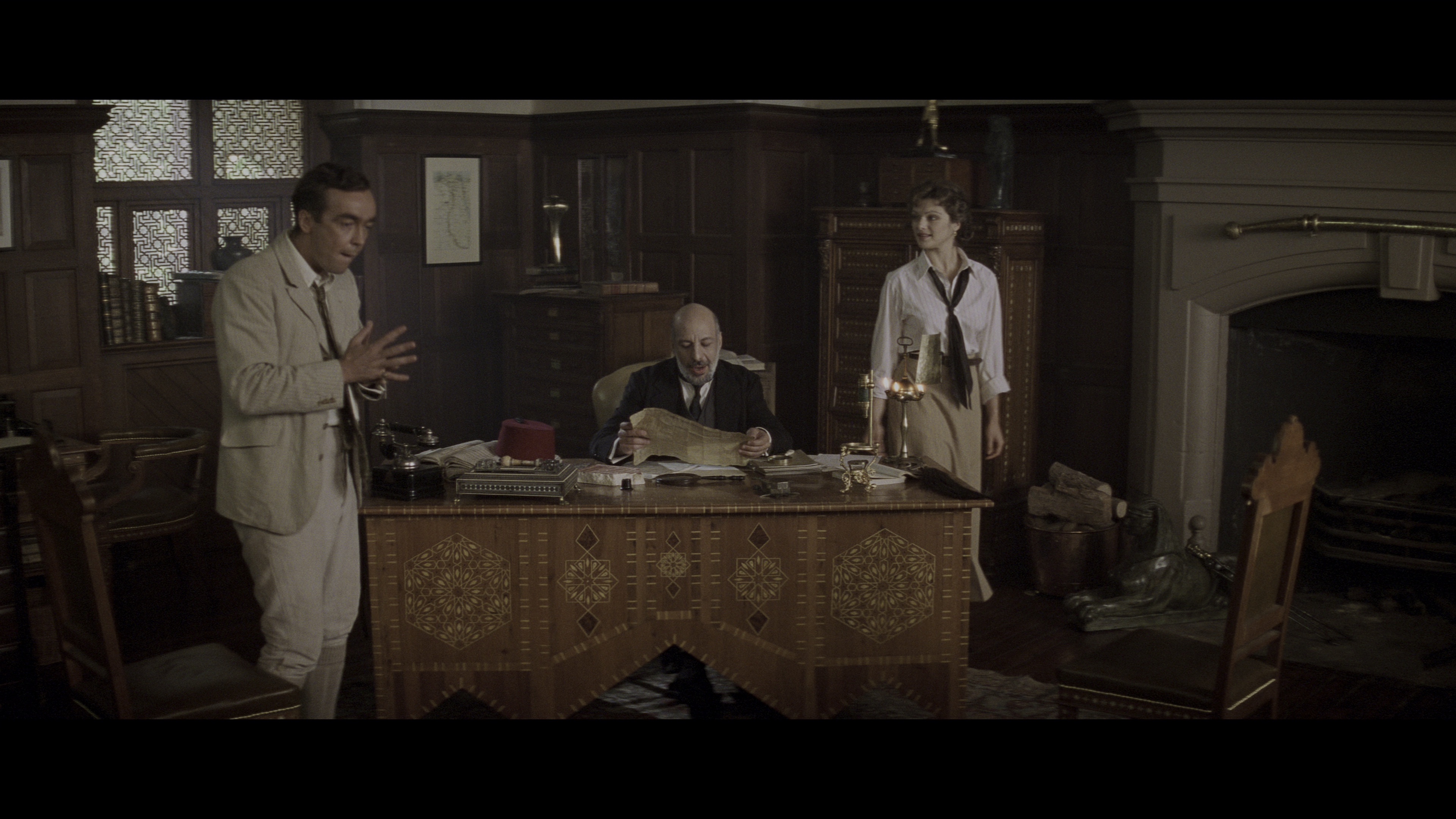 图书管理员伊芙琳(Rachel Weisz 瑞切尔·薇茨饰)偶然得到一张哈姆纳塔的地图,大为兴奋的她决定和哥哥一起去那儿考古,他们找到曾经的幸存者欧康诺(Brendan Fraser 布兰登·弗雷泽饰),三人结伴前往。