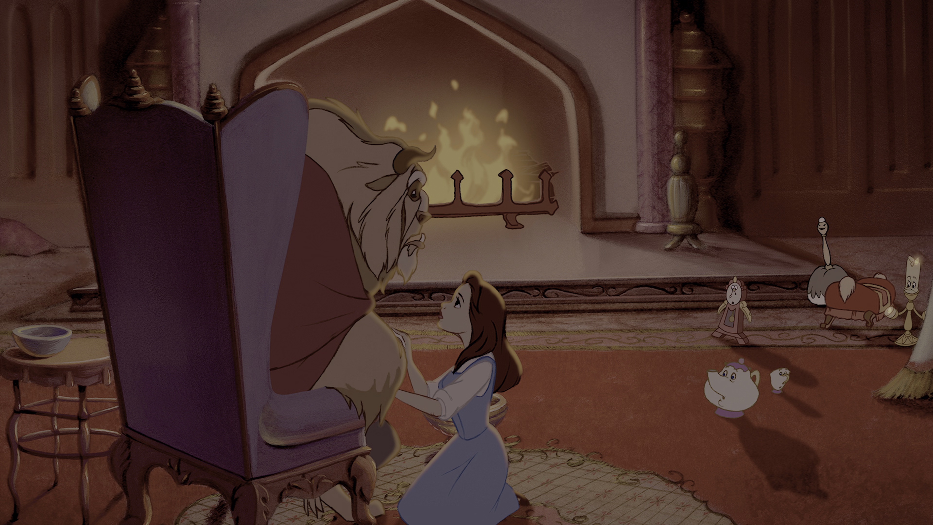 贝儿美丽善良,与老父亲一起住在一个宁静的小村庄里。一次,父亲不小心闯进了野兽的领地,被囚禁在野兽的城堡里。为了救出亲爱的父亲,贝儿只身犯险,答应与野兽同居于古堡而换回了父亲。野兽的城堡华丽而充满奇幻色彩,有充满绅士风度的烛台先生,和蔼亲切的茶壶妈妈,还有可爱的小茶壶宝宝。然而,贝儿生活的并不愉快,一心想念着她的父亲。